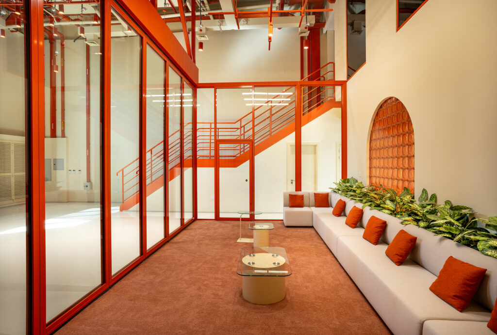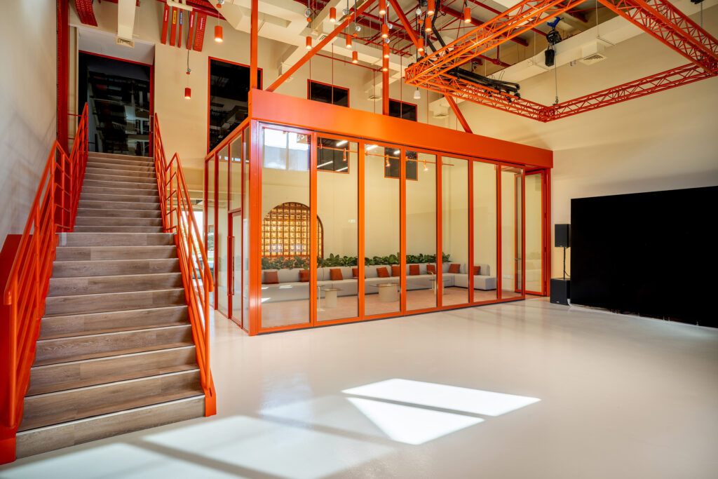 Design Infinity completed the full interior fit-out for BASE39, a multidisciplinary creative hub located within Sharjah Research, Technology and Innovation Park. The facility is designed to accommodate a range of activities, including co-working, prototyping, audio-visual production, exhibitions, performances, fabrication, and collaborative work.