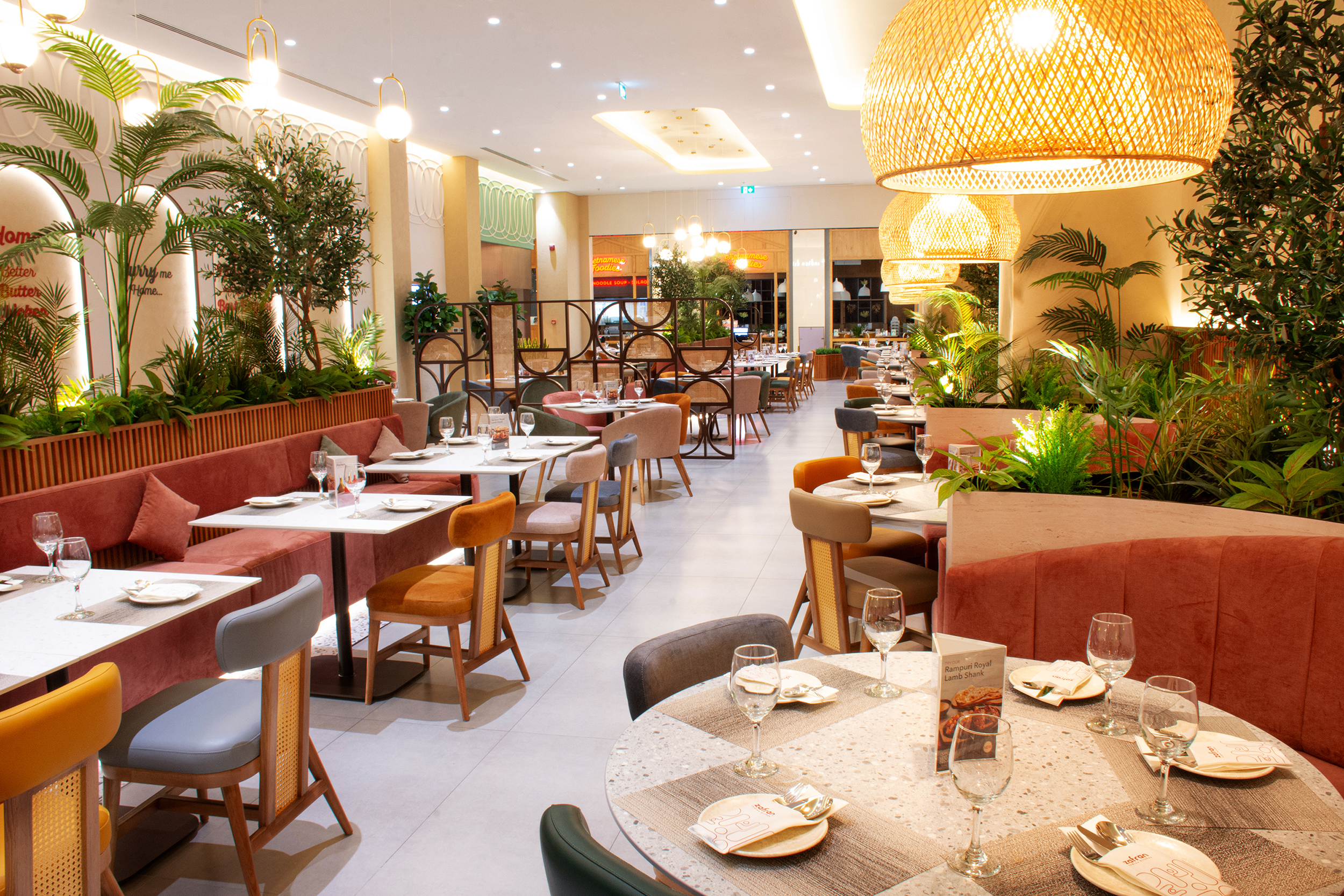 The interior fit-out of Zafran Restaurant exudes elegance and sophistication, perfectly complementing the culinary excellence for which Zafran is celebrated. Every detail of the restaurant’s interior creates a welcoming oasis where guests can indulge their senses and savor the rich flavors of Indian cuisine.